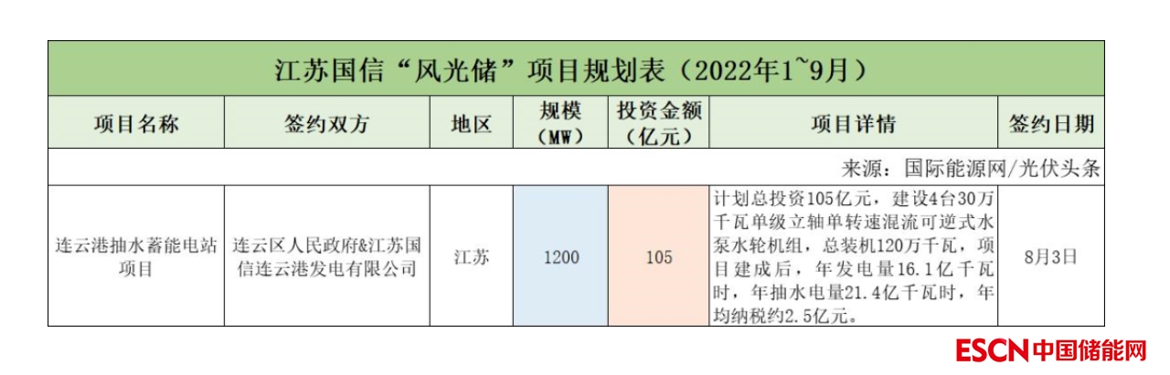 截至2022年9月30日,江蘇國信共簽約(規(guī)劃)1個風(fēng)光儲項目,項目規(guī)模1.2GW,投資金額105億元。