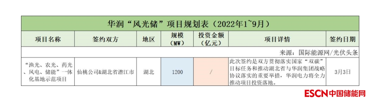 截至2022年9月30日,華潤共簽約(規(guī)劃)1個風(fēng)光儲項目,項目規(guī)模1.2GW。