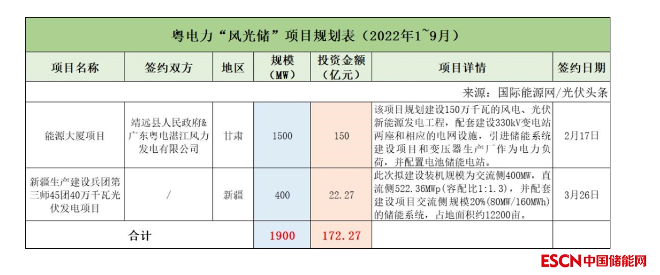 截至2022年9月30日,粵電力共簽約(規(guī)劃)2個風(fēng)光儲項目,明確規(guī)模共計1.9GW,明確投資金額共計172.27億元。