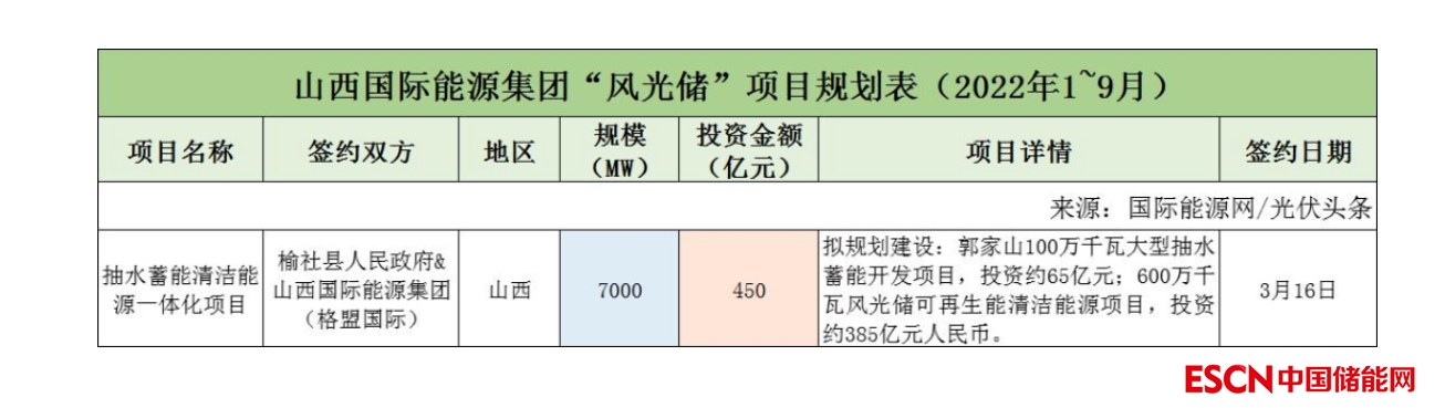 截至2022年9月30日,山西國際能源集團共簽約(規(guī)劃)1個風(fēng)光儲項目,項目規(guī)模為7GW,投資金額450億元。