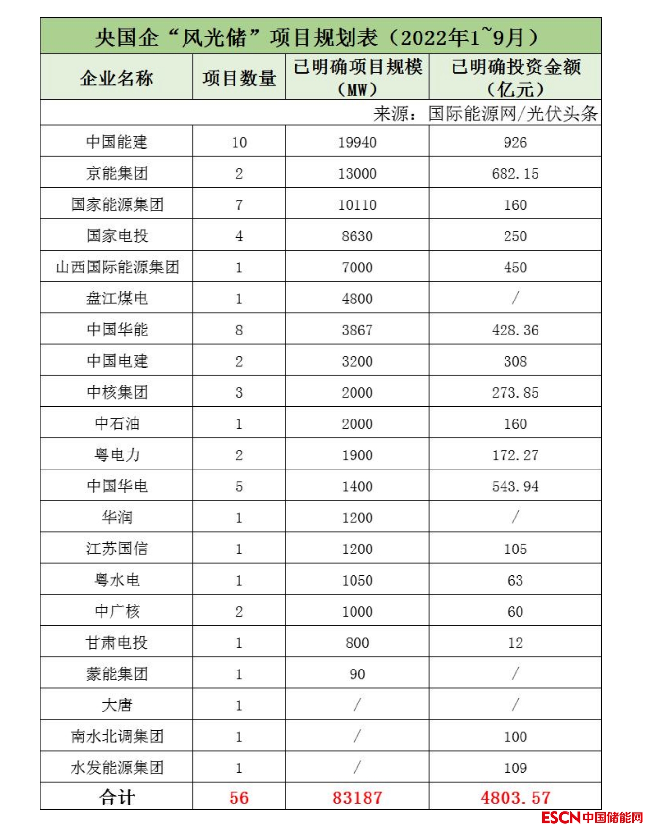 截至2022年9月30日,國家能源集團共簽約(規(guī)劃)7個風(fēng)光儲項目,明確項目規(guī)模共計10.11GW,有1個項目明確投資金額160億元。