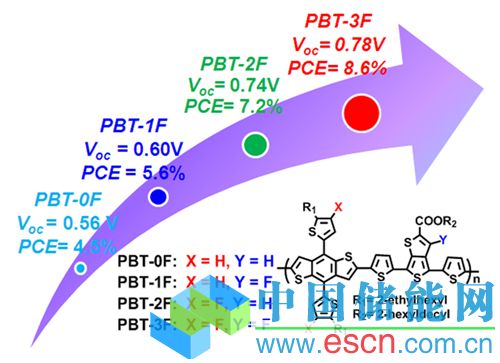 中國儲(chǔ)能網(wǎng)訊:在D-A共軛聚合物的受體單元上引入氟取代基,由于可以在不影響聚合物吸收光譜和遷移率的前提下,有效降低聚合物的HOMO能級(jí),進(jìn)而提高器件的開路電壓和光伏性能,成為近幾年來的研究熱點(diǎn);但是受限于受體單元在引入氟取代基時(shí)的選擇性,這種方法只能應(yīng)用于少數(shù)的聚合物光伏材料體系,因而,如何有效的拓展其在聚合物光伏材料體系中的應(yīng)用具有十分重要的科學(xué)意義。