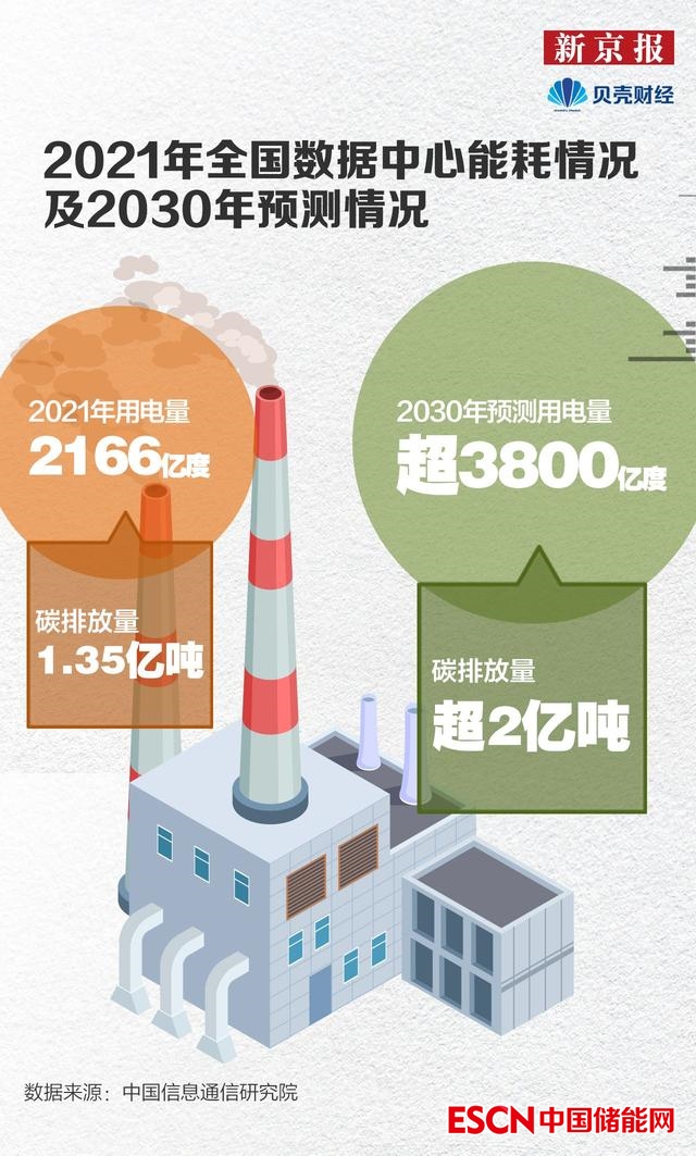 數(shù)據(jù)中心不僅帶來強大的算力,耗電量也逐步上升,在“雙碳”背景下,數(shù)據(jù)中心綠色轉(zhuǎn)型發(fā)展成為重要一環(huán)。據(jù)中國信息通信研究院測算,2017年至2020年,我國信息通信領(lǐng)域規(guī)模以上數(shù)據(jù)中心年耗電量年均增長28%。2030年,我國數(shù)據(jù)中心耗電量將超過3800億度,如果不采用可再生能源,碳排放量將超過2億噸。