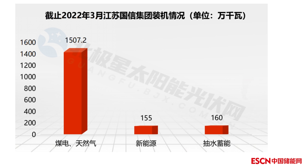 截止2022年3月江蘇國信控股裝機1822.2萬千瓦,其中煤電、天然氣裝機容量1507.2萬千瓦、新能源裝機容量155萬千瓦、抽水蓄能裝機容量160萬千瓦。