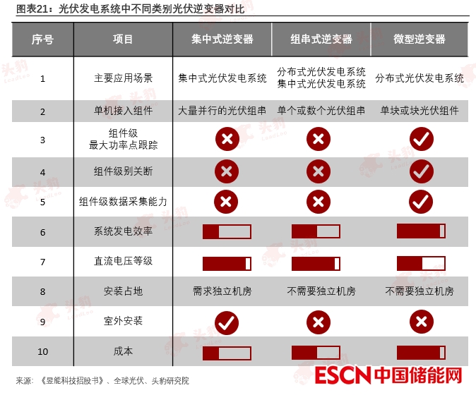 ③微型逆變器工作原理是單個(gè)微型逆變器對(duì)應(yīng)單塊或數(shù)塊光伏組件,可以對(duì)每塊光伏組件進(jìn)行單獨(dú)的最大功率點(diǎn)跟蹤,一般單體容量在5kW。即便是部分組件出現(xiàn)故障,依舊能獲得較組串式逆變器更高的發(fā)電效率,且運(yùn)行電流較低,降低安全隱患,但目前成本較高。