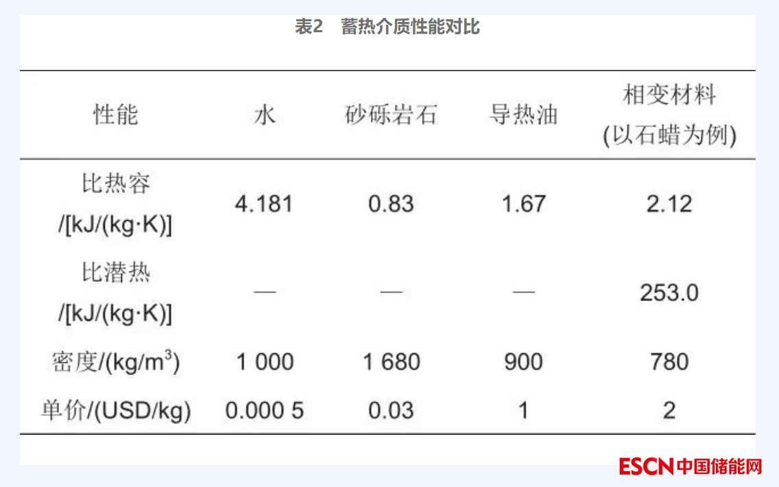 二氧化碳電熱儲(chǔ)能系統(tǒng)在蓄熱端進(jìn)行顯熱交換,CO2處于單相區(qū);在蓄冷端進(jìn)行潛熱交換,CO2處于兩相區(qū)。因此,系統(tǒng)換熱過程具有較好的熱匹配性。由于液態(tài)水的高熱容、高流動(dòng)性特性,且成本極低,相比于其他常見蓄熱介質(zhì)(表2),在儲(chǔ)能系統(tǒng)蓄換熱過程中被廣泛使用。