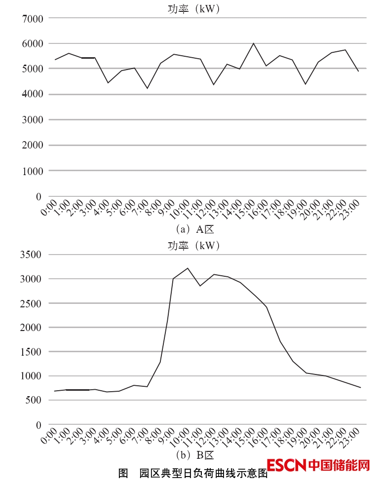 該園區(qū)分為A、B兩個分區(qū),分區(qū)A、B的典型日負(fù)荷曲線如下圖所示。