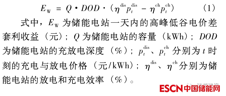 研究表明,峰谷價差達(dá)到0.7元/kWh時,儲能的收益率達(dá)到9.82%。儲能系統(tǒng)參與一個完整充放電循環(huán)的峰谷套利收益如下: