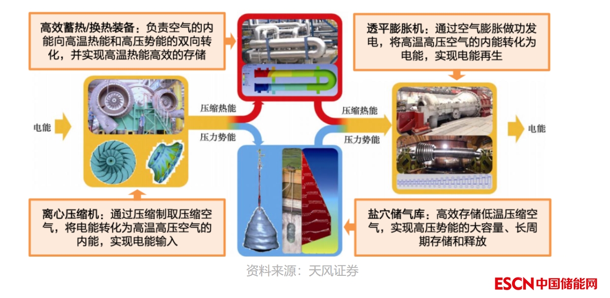 壓縮空氣儲能上游最核心設(shè)備為離心式空氣壓縮機+換熱器+透平膨脹機。