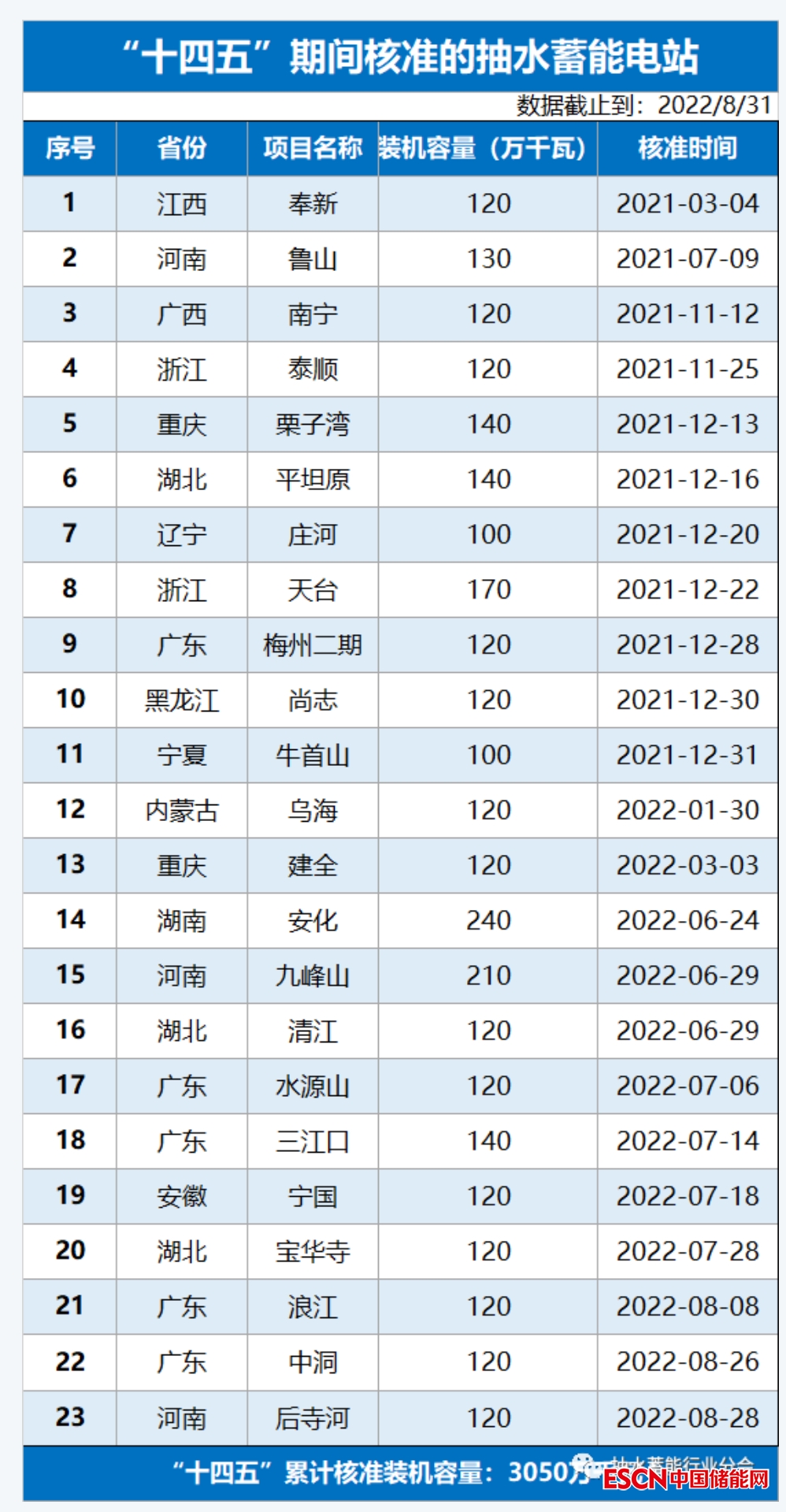 中國儲能網(wǎng)訊:截至 2022 年 8 月 31 日,“十四五”已核準(zhǔn) 23 座抽水蓄能電站,總裝機(jī)規(guī)模 3050 萬千瓦,項(xiàng)目投資規(guī)模超過 2000 億元。