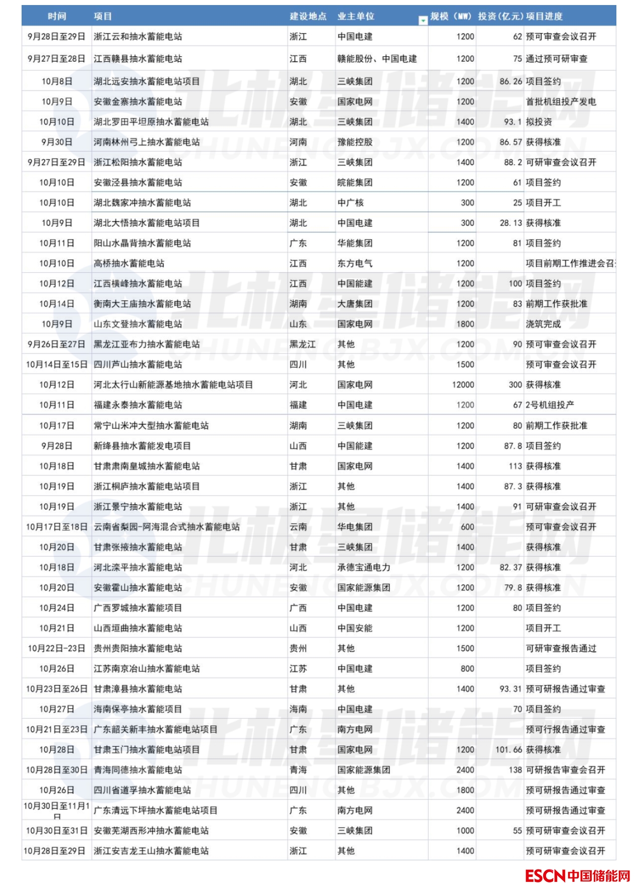 10月抽水蓄能項目詳情整理如下:
