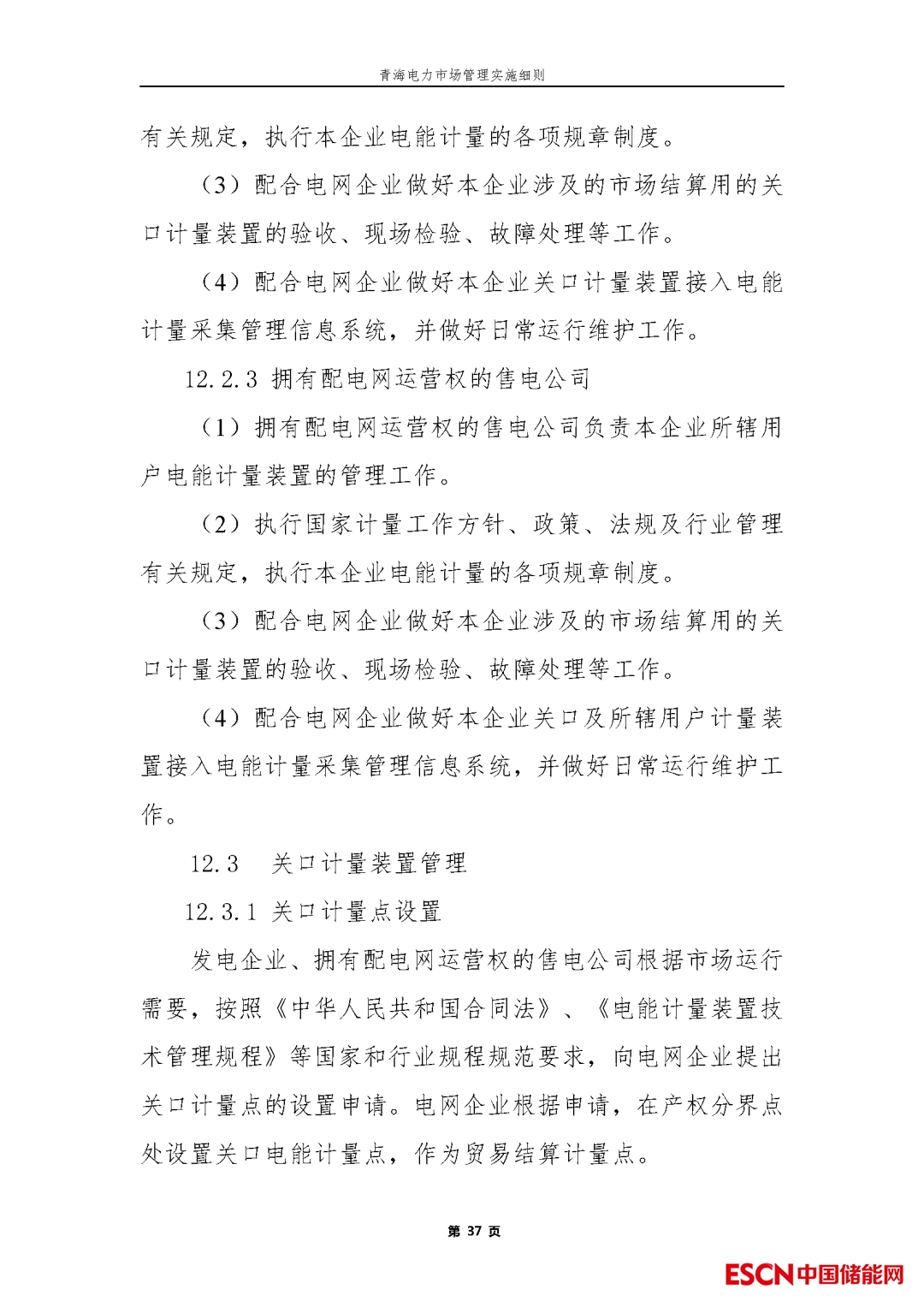 (2)發(fā)電企業(yè)、用戶計量出口外并網(wǎng)或直接接入電網(wǎng)側(cè),滿足電力調(diào)度機構(gòu)監(jiān)控、記錄其實時充放電狀態(tài)要求,滿足獨立計量、控制要求,具備電力、電量數(shù)據(jù)分時計量與傳輸條件,數(shù)據(jù)準確性與可靠性滿足條件。