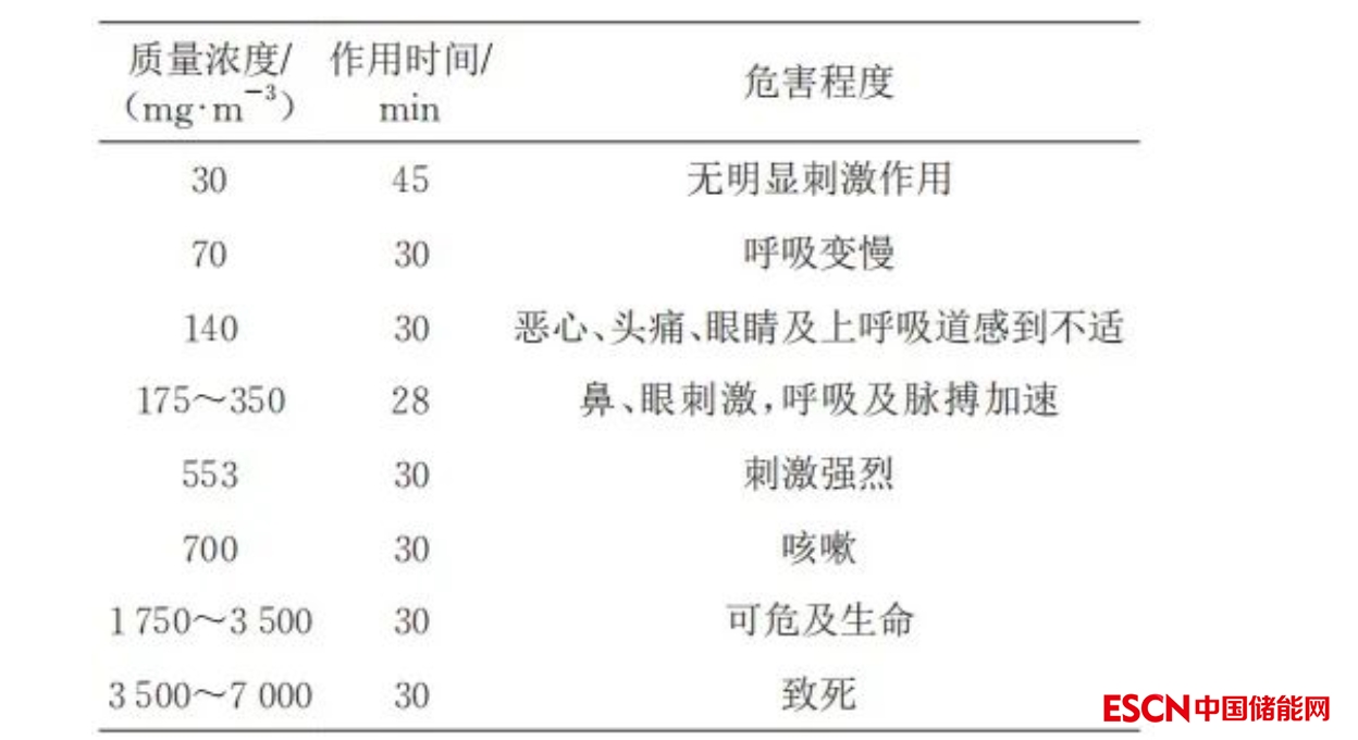 氨是一種重要的化工原料,可用于制造氨水、硝酸、胺類、銨鹽、純堿、氮肥、制冷劑等,應(yīng)用廣泛[47]。氨的最低自燃溫度為 651 ℃,爆炸極限體積分?jǐn)?shù)范圍16%~25%,最易引燃的體積分?jǐn)?shù)為 17%,產(chǎn)生最大爆炸壓力時的體積分?jǐn)?shù)為 22.5%,顯然,氨的泄漏存在一定的燃爆性。同時氨具有一定的毒害性[48],不同的氨泄漏量及泄漏時間對人體的毒害程度不同,輕則無明顯作用或呼吸變慢,重則危及生命、致人死亡(表 5)。