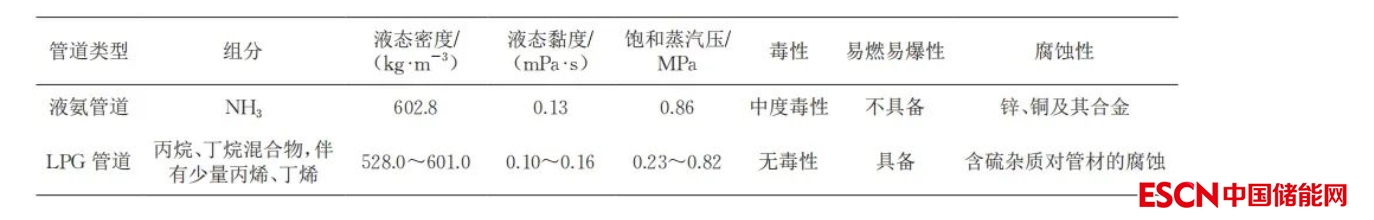 通過對比常溫常壓(25 ℃、101.325 kPa)條件下液氨與 LPG 物性參數(shù)(表 4)發(fā)現(xiàn),兩者密度、黏度、飽和蒸汽壓等基礎(chǔ)物性參數(shù)基本相近,因此,液氨管道在設(shè)計參數(shù)及輸送工藝等方面與 LPG 管道類似[41]。然而,首先,由于液氨為中度毒性物質(zhì),其管道泄漏檢測處置及回收處理方式與 LPG 管道存在不同,同時,為了減少泄漏,化工液氨管道常選用的屏蔽泵在 LPG 長輸管道上也未有應(yīng)用,其對長輸管道的適應(yīng)性有待進(jìn)一步研究;其次,液氨與 LPG 在易燃易爆性能及腐蝕性能方面的差異性,造成兩者管道、設(shè)備、密封件等材質(zhì)要求不同,罐區(qū)、站場火災(zāi)危險等級及防火間距要求也有所不同。根據(jù)美國運(yùn)輸部管道輸送危險性物質(zhì)管理條例要求,美國液氨管道設(shè)計比 LPG 管道設(shè)計要求更加嚴(yán)格。因此,液氨管道可以借鑒 LPG 管道設(shè)計、建設(shè)及運(yùn)營經(jīng)驗,但仍需針對液氨與 LPG 物性差異開展系統(tǒng)性驗證。