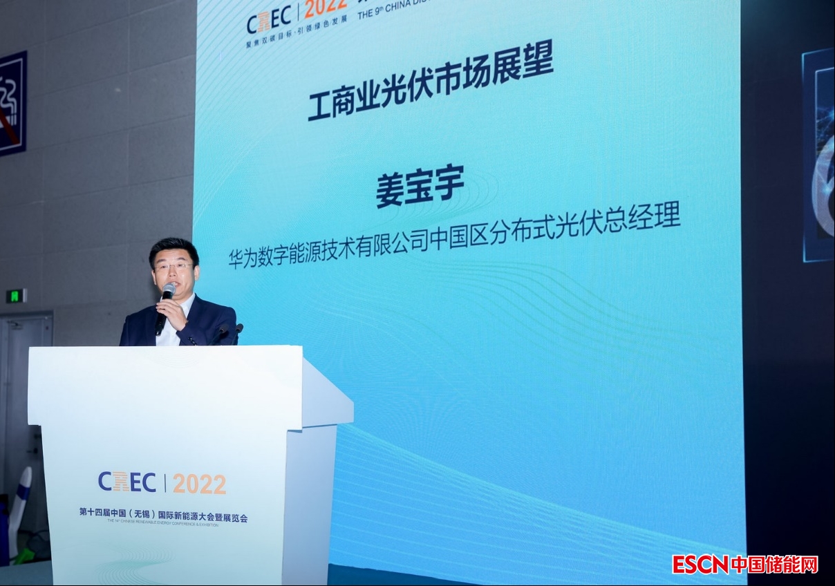 圖注:華為數(shù)字能源中國(guó)區(qū)分布式光伏總經(jīng)理姜寶宇做主題演講