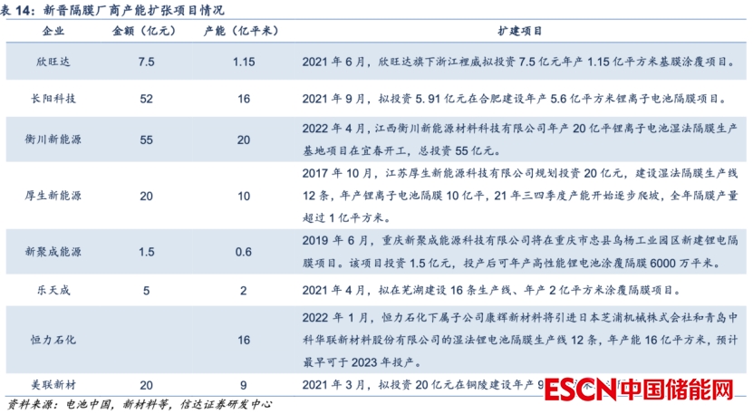 [10]《鋰電產(chǎn)業(yè)行業(yè)專題報告:隔膜產(chǎn)品日益緊俏,行業(yè)擴產(chǎn)節(jié)奏加快》,英大證券