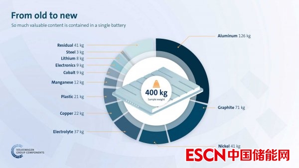 目前全球范圍內(nèi),各種回收方法都在不斷提高,我們看到各種材料回收率越來(lái)越高,都往90%方向走。歐盟有要求,將來(lái)的動(dòng)力電池就是要用一定比例的回收材料才能使用。比如,大眾汽車(chē)的試點(diǎn)階段將從一個(gè)適度的目標(biāo)開(kāi)始——每班回收5批電池。每年的容量將達(dá)到3600批電池。每批電池400公斤,回收材料約1500噸。
