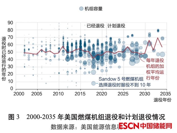 高昂的污染物控制成本倒逼煤電主動(dòng)關(guān)停。在各類污染物排放控制政策的安排下,美國(guó)的煤電項(xiàng)目需要安裝脫硫脫硝設(shè)備,以及制汞、可吸入顆粒物和氯化氫等有害氣體排放的裝置,固定投資成本大幅增加。2012 年,在美國(guó)新建一個(gè)超超臨界燃煤機(jī)組的固定投資高達(dá)4700美元 /千瓦,是燃?xì)鈾C(jī)組的2.4倍,導(dǎo)致開發(fā)商取消或推遲了很多已經(jīng)規(guī)劃的煤電項(xiàng)目。據(jù)統(tǒng)計(jì),美國(guó)有近九成煤電機(jī)組的運(yùn)行年份超過40年,大量現(xiàn)役機(jī)組因不愿或無力安裝環(huán)保設(shè)備而主動(dòng)選擇關(guān)停。2000-2020 年,美國(guó)累計(jì)淘汰了1 億千瓦煤電機(jī)組,其中八成以上是在過去10年間關(guān)停的,意味著在市場(chǎng)化競(jìng)爭(zhēng)環(huán)境中,氣電和可再生能源發(fā)電 正在快速替代煤電的發(fā)展空間。根據(jù) 2021年9月EIA 預(yù)測(cè),到2030年美國(guó)將再淘汰 5900千瓦的燃煤機(jī)組,約為2020年煤電總裝機(jī)的四分之一, 美國(guó)“退煤”大局已定。