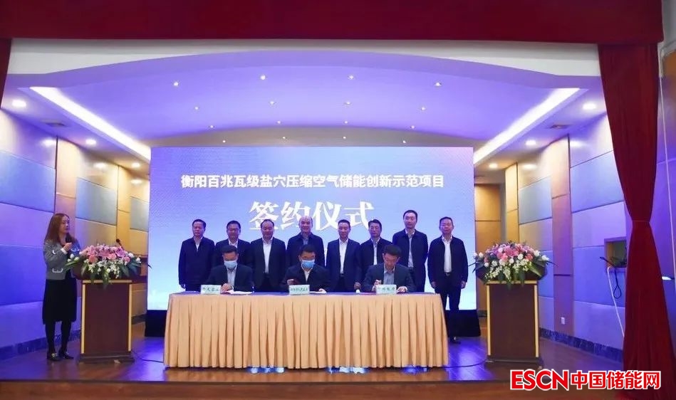隨后,合作各方簽署了《湖南衡陽百兆瓦級鹽穴壓縮空氣儲能創(chuàng)新示范項目合作開發(fā)框架協(xié)議》《湖南衡陽百兆瓦級鹽穴壓縮空氣儲能創(chuàng)新示范項目合資合作框架協(xié)議》。