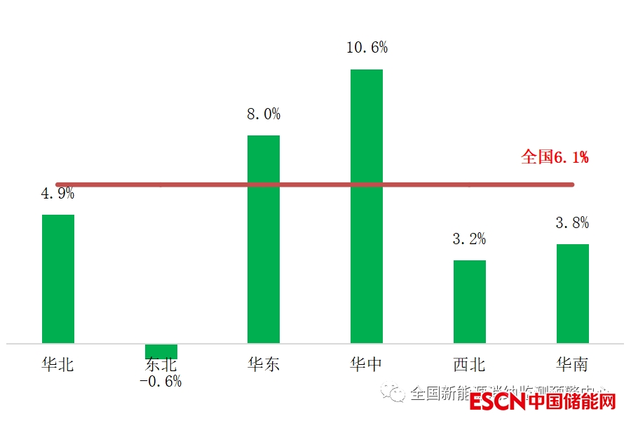 三季度各區(qū)域全社會(huì)用電量同比增速情況