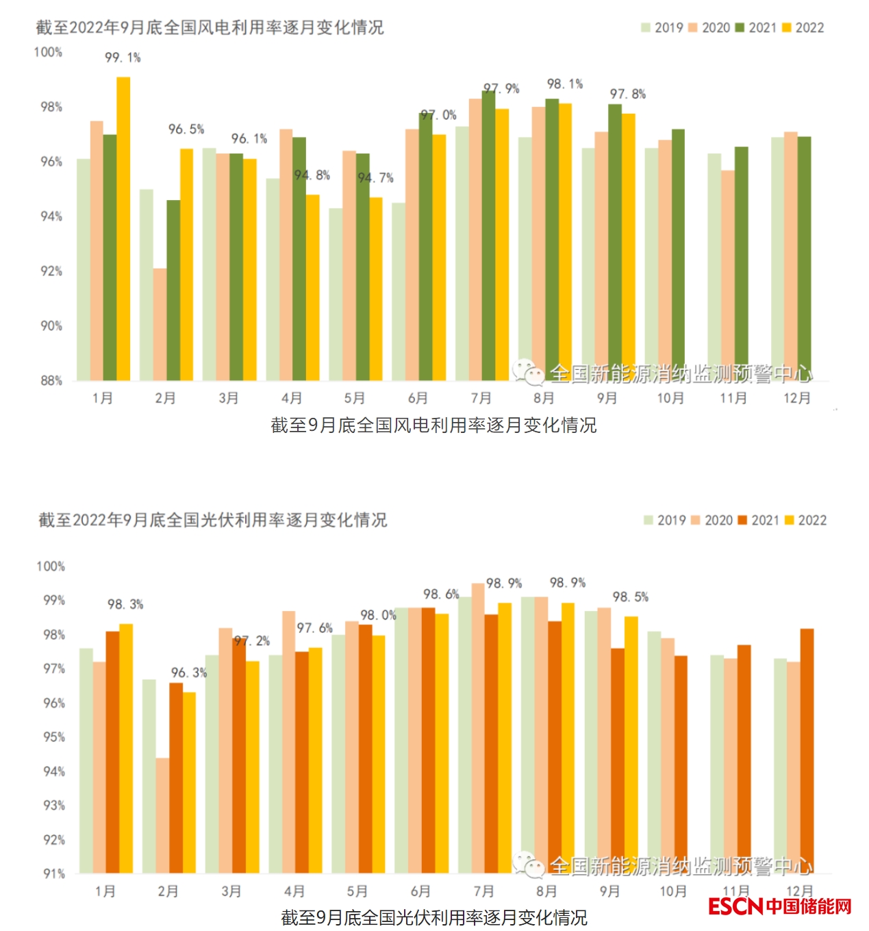 三季度全國新能源消納利用整體處于合理水平。風(fēng)電利用率為98%,同比下降0.3個(gè)百分點(diǎn);光伏利用率為99%,同比上升0.8個(gè)百分點(diǎn)。今年前三季度,風(fēng)電累計(jì)利用率為96.5%,同比下降0.5個(gè)百分點(diǎn);光伏利用率為98.2%,同比上升0.17個(gè)百分點(diǎn)。