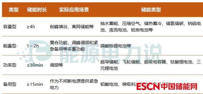 按照時(shí)長(zhǎng)要求的不同,儲(chǔ)能的應(yīng)用場(chǎng)景大致可以分為容量型(≥4h)、能量型(約1~2h)、功率型(≤30min)和備用型(≥15min)四類。