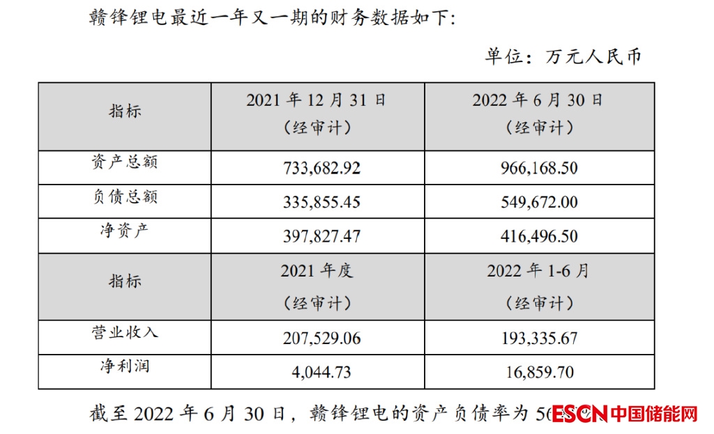 截至上半年底,贛鋒鋰電賬面總資產(chǎn)96.6億元,凈資產(chǎn)41.6億元,資產(chǎn)負債率為57%;2022年上半年公司實現(xiàn)營收19.33億元、實現(xiàn)凈利潤1.69億元。