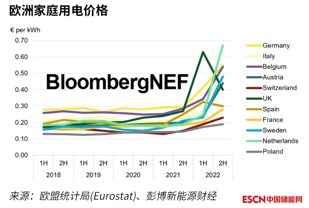 今年高天然氣價(jià)格已經(jīng)反映在消費(fèi)者電價(jià)上。盡管消費(fèi)者電價(jià)的調(diào)整速度比現(xiàn)貨電價(jià)慢,但也已經(jīng)大幅上漲。在英國(guó),政府在今年下半年設(shè)定了平均能源價(jià)格上限(為0.34英鎊/kWh),英鎊兌歐元也走弱,但對(duì)國(guó)家財(cái)政受損以及個(gè)人和企業(yè)承受巨大壓力的擔(dān)憂(yōu)持續(xù)存在。