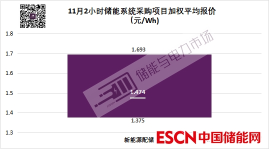 2小時磷酸鐵鋰儲能系統(tǒng)報價區(qū)間為1.375-1.693元/Wh,加權(quán)平均報價為1.474元/Wh。