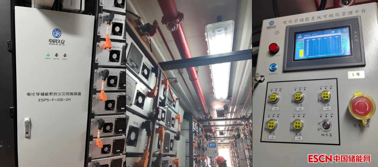 公司自主研發(fā)的程控式“電化學(xué)儲(chǔ)能系統(tǒng)熱失控監(jiān)測(cè)預(yù)警及防護(hù)系統(tǒng)”,運(yùn)用通過多參數(shù)耦合探測(cè)技術(shù)(溫度、煙霧、特征氣體、火焰等)與鋰離子電池?zé)崾Э仡A(yù)測(cè)模型的有機(jī)結(jié)合,實(shí)現(xiàn)對(duì)電池火災(zāi)的精準(zhǔn)判斷和多級(jí)預(yù)警。消防方面運(yùn)用滅火效率高、絕緣性能好、環(huán)保潔凈的全氟己酮滅火劑,其獨(dú)特的點(diǎn)動(dòng)噴射技術(shù)可實(shí)現(xiàn)對(duì)熱失控電池的快速撲救和長(zhǎng)效抑制。通過同一管路及噴組,兼容二次水消防,可實(shí)現(xiàn)對(duì)電化學(xué)儲(chǔ)能電站火災(zāi)的多級(jí)防護(hù)。
