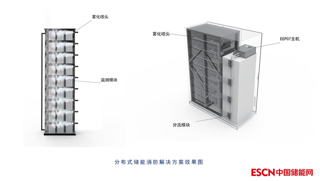 每個(gè)電池箱內(nèi)布置監(jiān)測(cè)模塊和霧化噴頭,能夠精準(zhǔn)且迅速地判斷火災(zāi)信號(hào),通過監(jiān)測(cè)預(yù)警與消防主機(jī)聯(lián)動(dòng),將火災(zāi)抑制劑輸送至 PACK 內(nèi)部,有效抑制電池包內(nèi)部的熱擴(kuò)散。