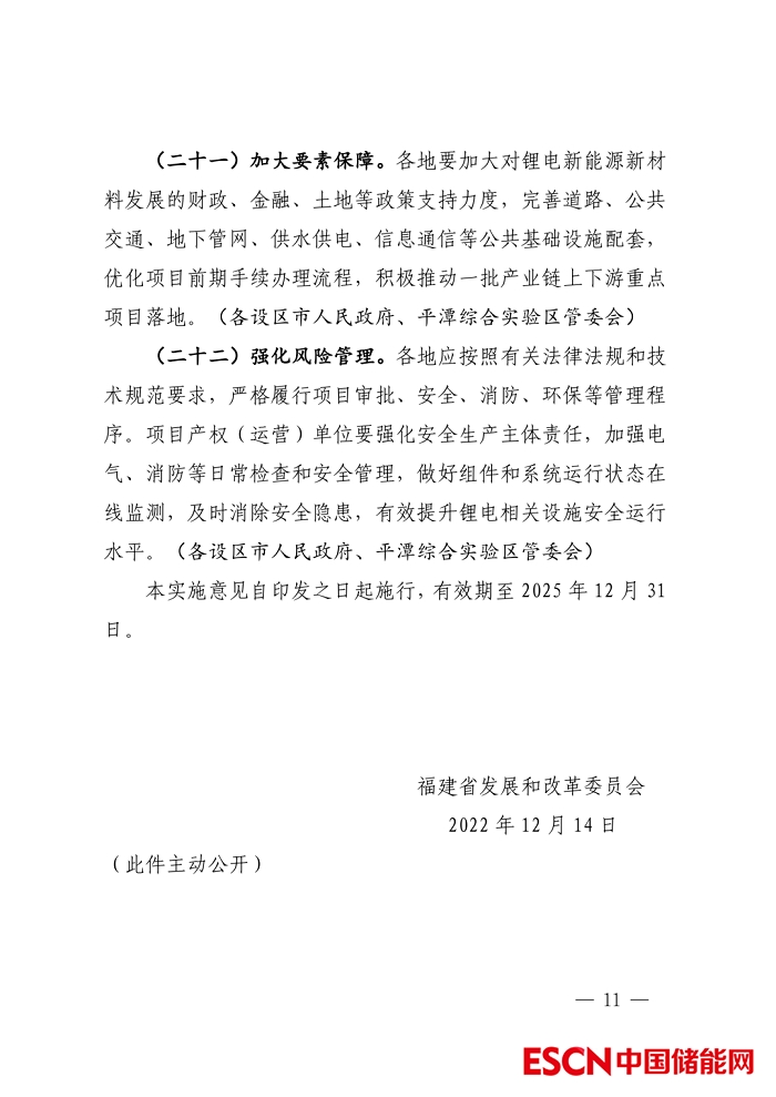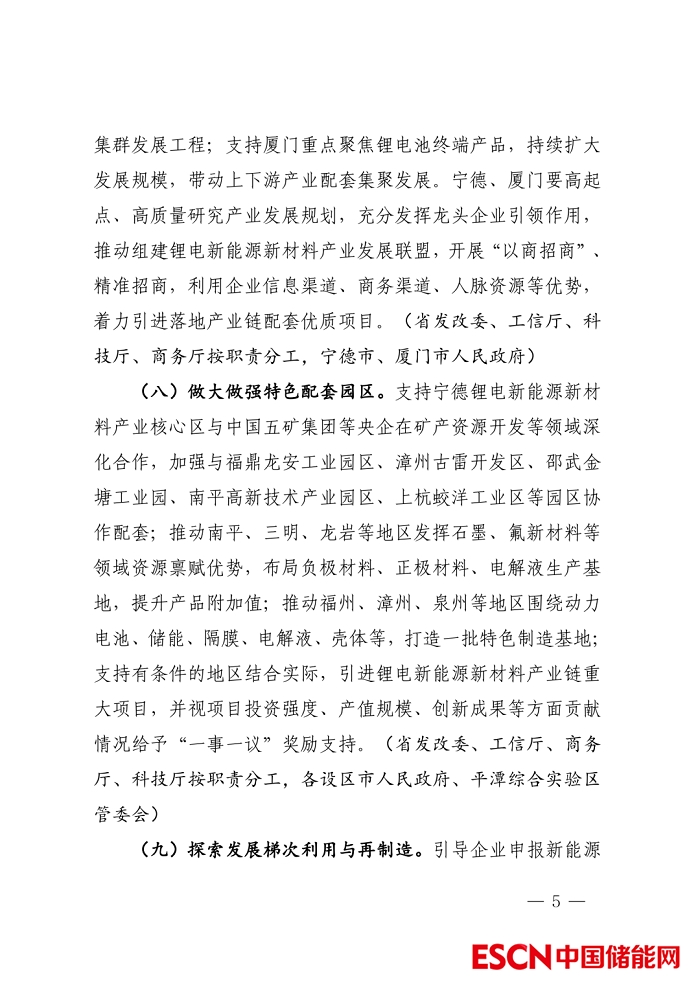 中國(guó)儲(chǔ)能網(wǎng)訊:近日,福建省發(fā)改委發(fā)布《關(guān)于加快推動(dòng)鋰電新能源新材料產(chǎn)業(yè)高質(zhì)量發(fā)展的實(shí)施意見》(以下簡(jiǎn)稱《實(shí)施意見》)。《實(shí)施意見》提出了爭(zhēng)取到2025年,全省鋰電池產(chǎn)能規(guī)模突破500GWh,全產(chǎn)業(yè)鏈產(chǎn)值超過6000億的發(fā)展目標(biāo)。重點(diǎn)圍著向上游做優(yōu)做強(qiáng)鋰電池產(chǎn)業(yè)鏈集群和向下游推動(dòng)多元化應(yīng)用進(jìn)行發(fā)力。