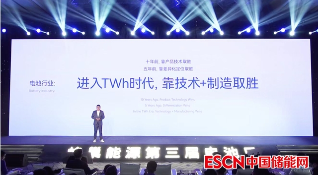 楊紅新在電池日上表示,十年前,電池企業(yè)靠產(chǎn)品技術取勝;五年前,靠差異化定位取勝;但進入TWh時代,則靠技術+制造取勝。