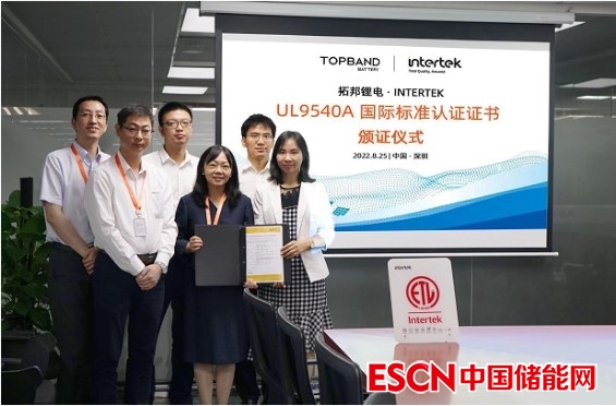 3)深圳市拓邦鋰電池有限公司研發(fā)的鋰電儲能系統(tǒng)通過Intertek天祥集團(tuán)認(rèn)證測試,獲頒UL 9540A 及UL 1973 ETL認(rèn)證證書。產(chǎn)品符合北美市場認(rèn)證相關(guān)要求。