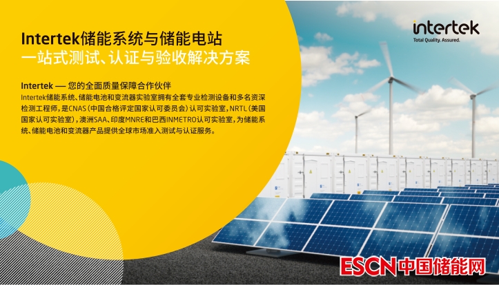 Intertek憑借遍布全球的技術(shù)網(wǎng)絡(luò)以及本地化的儲能系統(tǒng)實驗室,為國內(nèi)外儲能產(chǎn)品生產(chǎn)企業(yè)提供全球一站式的專業(yè)服務(wù),服務(wù)內(nèi)容涵蓋北美 cETLus認(rèn)證及現(xiàn)場貼標(biāo)和CEC列名、歐洲COC/CE認(rèn)證、澳大利亞SAA認(rèn)證和CEC列名、巴西INMETRO測試與注冊、印度MNRE/BIS認(rèn)證、中國CQC/CGC認(rèn)證等各個國家和地區(qū)的市場準(zhǔn)入服務(wù)。同時,亦可為 儲能電站提供設(shè)計評估/系統(tǒng)測試、儲能電站監(jiān)造及監(jiān)理服務(wù)、儲能電站出廠驗收及竣工驗收、儲能電站并網(wǎng)驗收和電纜檢測驗收等服務(wù)。