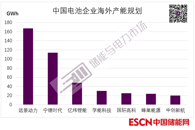 根據(jù)儲能與電力市場的統(tǒng)計,已經(jīng)啟動海外建廠進(jìn)程的中國電池企業(yè)已經(jīng)達(dá)到7家,工廠選址遍布德國、匈牙利、美國、泰國等10個國家,已公布的產(chǎn)能計劃超過430GWh。