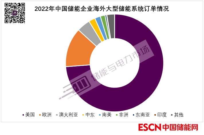 2022年我們同樣看到比亞迪、陽光電源、天合儲能、科華數(shù)能、阿特斯等國內(nèi)一線儲能系統(tǒng)集成商發(fā)力海外市場,憑借其在海外光伏等領(lǐng)域建立的銷售渠道,推廣儲能產(chǎn)品。儲能項目遍布美國、歐洲、澳大利亞、沙特、智利、印度等全球各地。