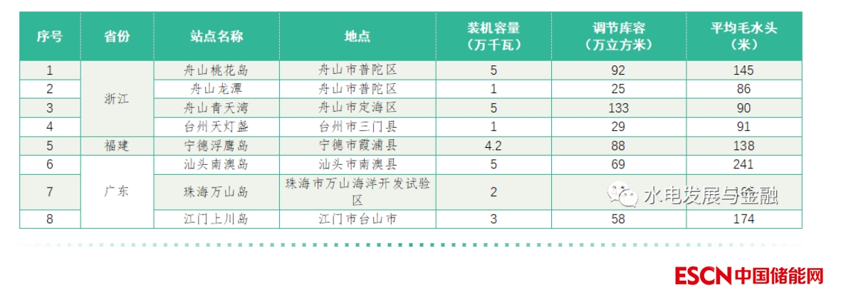 4、根據(jù)上表數(shù)據(jù),綜合考慮地形條件、工程布置、節(jié)約淡水資源等多方面因素,進(jìn)一步篩選出建設(shè)條件相對較好的8個典型站點(diǎn),分布在浙江、福建、廣東3省,詳情見下表。
