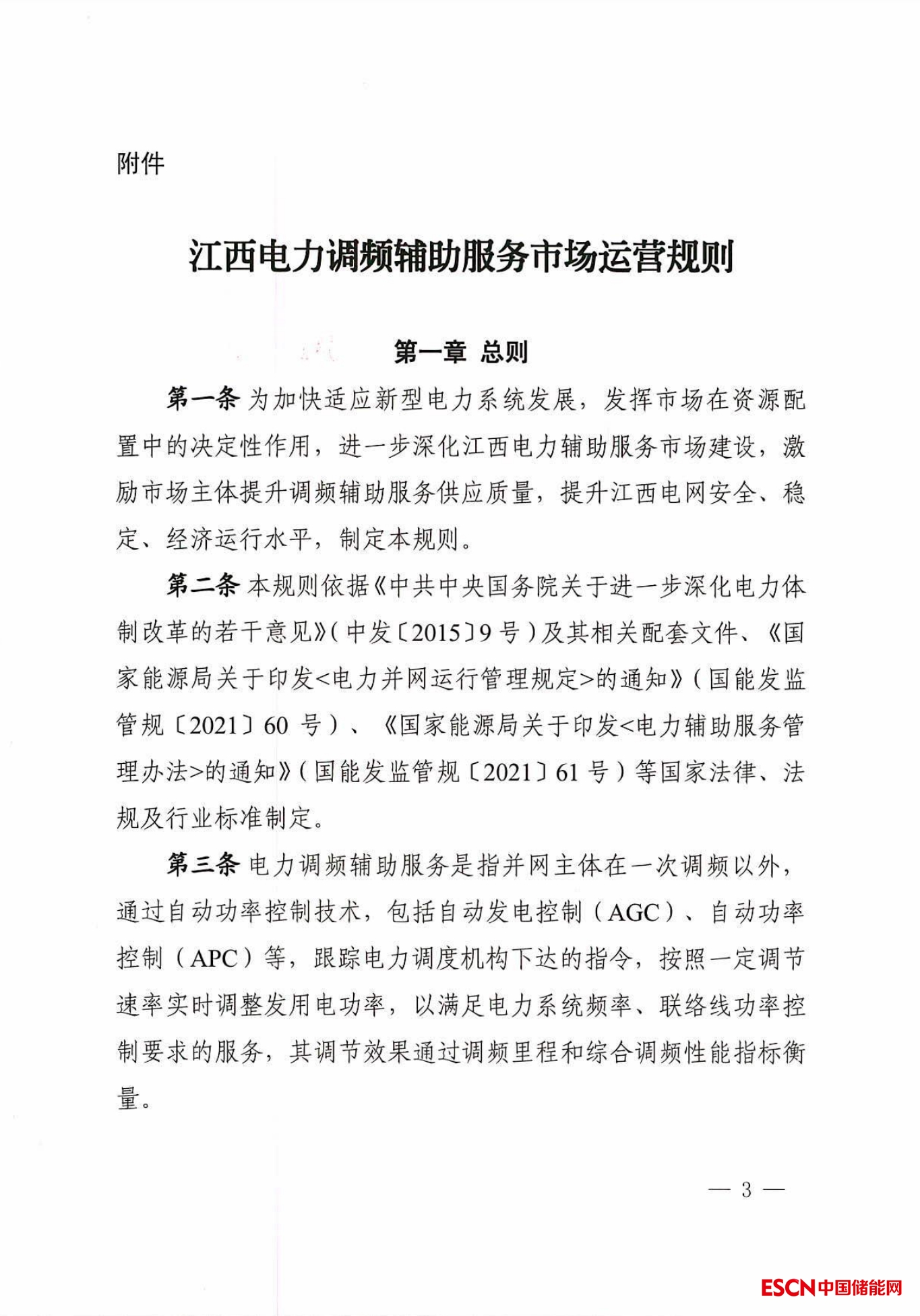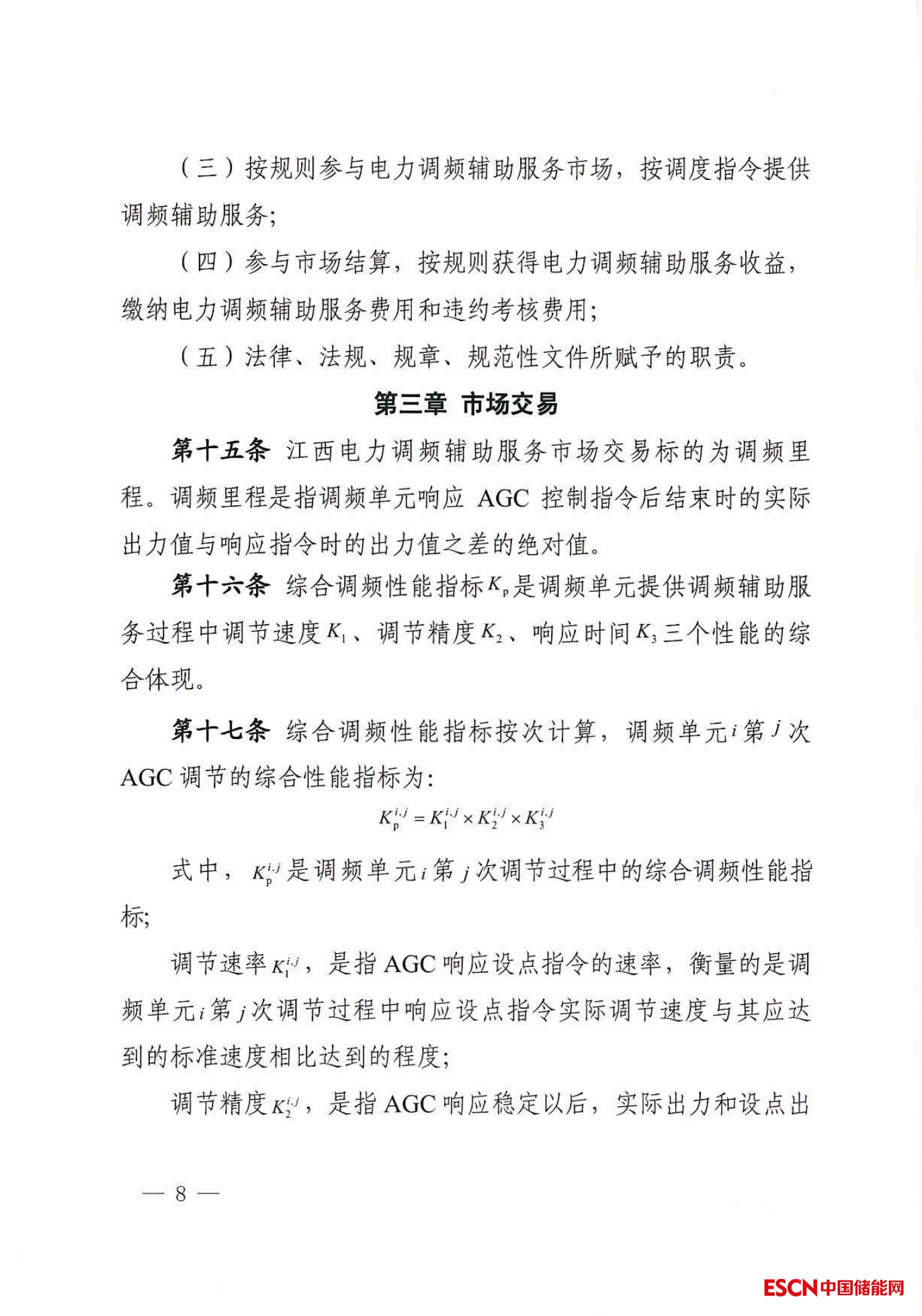 12月29日,華中能監(jiān)局印發(fā)了《江西電力調(diào)頻輔助服務(wù)市場(chǎng)運(yùn)營(yíng)規(guī)則》(以下簡(jiǎn)稱《運(yùn)營(yíng)規(guī)則》),指出單機(jī)容量300MW及以上的火儲(chǔ)聯(lián)合機(jī)組、4MW/4MWh以上的獨(dú)立儲(chǔ)能電站及儲(chǔ)能裝置,風(fēng)儲(chǔ)、光儲(chǔ)可以為系統(tǒng)提供調(diào)頻輔助服務(wù)。