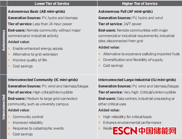 迷你網(wǎng)格可以根據(jù)其與網(wǎng)格的連接和所提供的服務(wù)水平進行分類。一個可再生的微型電網(wǎng)可以相互連接到主電網(wǎng),或者獨立于鄰近的電網(wǎng),在這種情況下,它被認為是自主的。可再生的微型電網(wǎng)可以提供不同水平的服務(wù),從僅提供照明等基本服務(wù)到更高水平的服務(wù),如滿足商業(yè)能源需求。表S1提供了這些類別的概述。