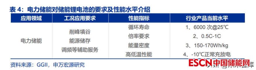 動(dòng)力電池側(cè)重能量密度的提升,而儲(chǔ)能電池更為側(cè)重循環(huán)壽命的提高。電力儲(chǔ)能項(xiàng)目 投資關(guān)注點(diǎn)短期內(nèi)以初始投資成本為主,中長(zhǎng)期的趨勢(shì)來(lái)看,將更看中全生命周期成本。 電力儲(chǔ)能對(duì)儲(chǔ)能系統(tǒng)循環(huán)壽命和倍率性能要求更高,而電力儲(chǔ)能應(yīng)用分為容量型和功率型, 其中容量型應(yīng)用注重電池充放的經(jīng)濟(jì)性,要求電芯和系統(tǒng)具備高循環(huán)壽命和寬泛的工作溫度范圍。功率型應(yīng)用注重短時(shí)調(diào)頻的實(shí)時(shí)響應(yīng),要求電池能短時(shí)間高倍率充放電。目前容 量型應(yīng)用是電力儲(chǔ)能主流,在電力儲(chǔ)能初始投資成本壓力較大的情況下,更高循環(huán)壽命的 電芯意味著全生命周期度電成本的降低。我們認(rèn)為,隨著國(guó)內(nèi)大型儲(chǔ)能建設(shè)的驅(qū)動(dòng)因素逐 漸由政策驅(qū)動(dòng)轉(zhuǎn)向政策+經(jīng)濟(jì)性聯(lián)合驅(qū)動(dòng),項(xiàng)目投資方將更加青睞循環(huán)壽命高的電池,儲(chǔ)能 行業(yè)競(jìng)爭(zhēng)將從重視初始投資成本轉(zhuǎn)向重視度電成本。