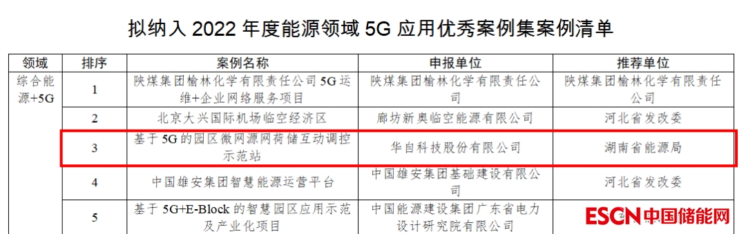 中國儲能網(wǎng)訊:為深入貫徹黨中央、國務(wù)院關(guān)于加快推動5G發(fā)展的決策部署,全面推動能源領(lǐng)域5G應(yīng)用規(guī)模化落地,國家能源局組織開展2022年度能源領(lǐng)域5G應(yīng)用優(yōu)秀案例征集及遴選工作。經(jīng)過專家評審和企業(yè)答辯,本次遴選中全國僅有33個項(xiàng)目入選,其中華自科技“基于5G的園區(qū)微網(wǎng)源網(wǎng)荷儲互動調(diào)控示范站”項(xiàng)目作為湖南省唯一入選案例,躋身于2022年度能源領(lǐng)域5G應(yīng)用優(yōu)秀案例榜單。