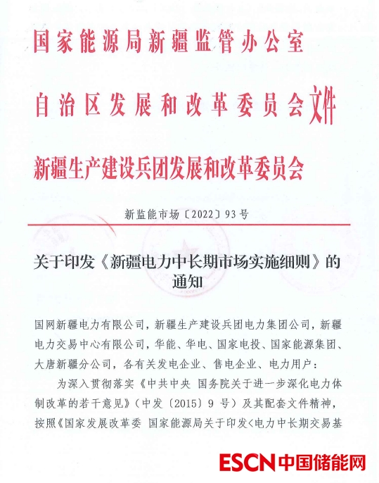 中國儲能網(wǎng)訊:近日,國家能源局新疆監(jiān)管辦公室印發(fā)《新疆電力中長期市場實施細則》。