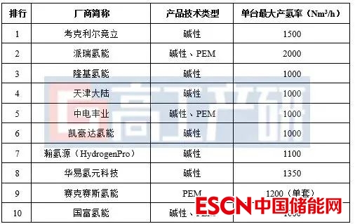 2022年中國電解水制氫設(shè)備廠商出貨量TOP 10