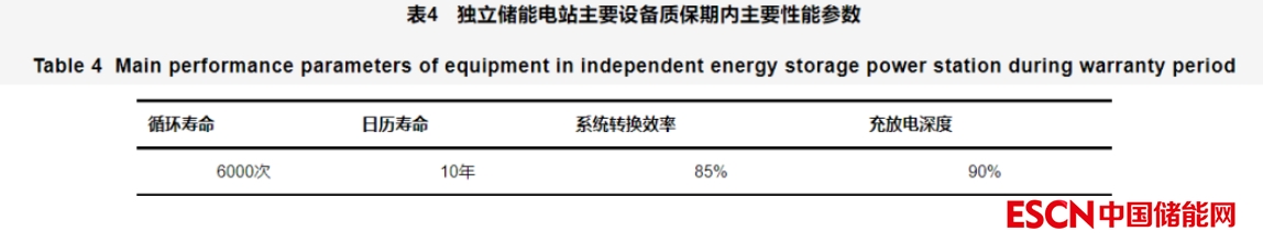 本文在經(jīng)濟性測算時,按照目前主流電池性能進行經(jīng)濟性相關(guān)參數(shù)假設(shè),具體情況見表4。