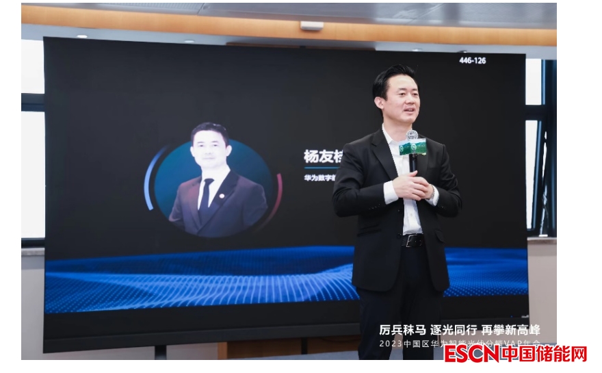 圖注:華為數(shù)字能源全球營(yíng)銷服體系總裁楊友桂發(fā)表致辭