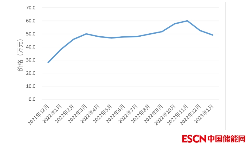中國儲能網(wǎng)訊:近期,碳酸鋰等主要原材料價格持續(xù)下跌,以磷酸鐵鋰電池正極原材料電池級碳酸鋰價格為例,截至1月9日,電池級碳酸鋰價格報價約為49.2萬元/噸,已跌破50萬元/噸大關(guān)。