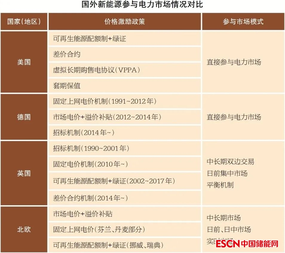 從全世界范圍來看,在新能源發(fā)展初期,許多國家通過固定上網(wǎng)電價機制、溢價補貼機制、“可再生能源配額制+綠證”、差價合約等政策機制鼓勵新能源產(chǎn)業(yè)發(fā)展,基本是以保障性消納為主,市場化機制為輔,不斷提升新能源在電力市場中的競爭力。隨著新能源快速發(fā)展、競爭力不斷提升,政府逐漸減少補貼,推動其平價甚至低價上網(wǎng)。此外,國外還在完善電量偏差處理機制、調(diào)峰調(diào)頻及輔助服務(wù)機制,推動新能源在更大市場范圍內(nèi)消納等方面進行了很多探索和實踐,積累了很多寶貴經(jīng)驗,對我國具有很強的借鑒意義。