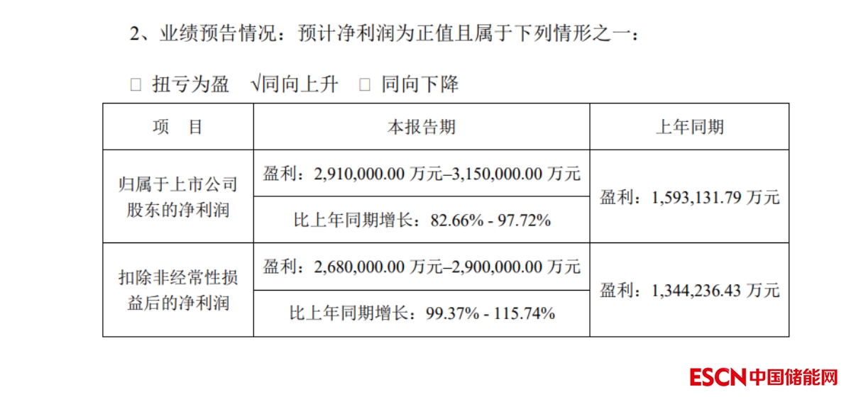 中國(guó)儲(chǔ)能網(wǎng)訊:◎1月12日,寧德時(shí)代發(fā)布業(yè)績(jī)預(yù)告,預(yù)計(jì)2022年歸屬于上市公司股東的凈利潤(rùn)約291億元至315億元,同比增長(zhǎng)82.66%至97.72%。