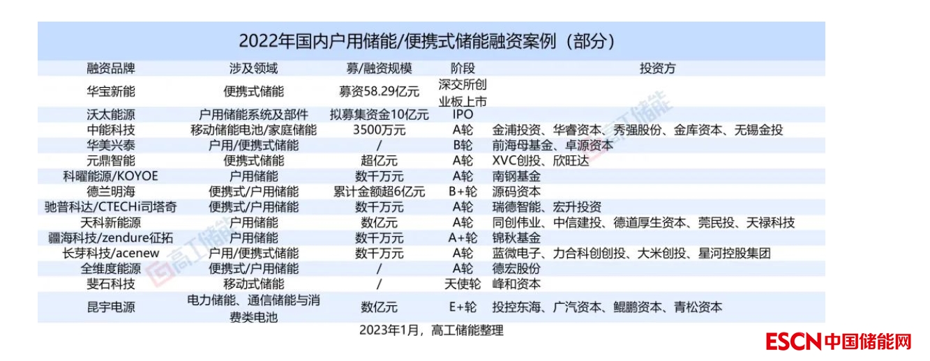 以下為高工儲(chǔ)能整理的2022年國(guó)內(nèi)戶用儲(chǔ)能/便攜式儲(chǔ)能融資案例(部分):